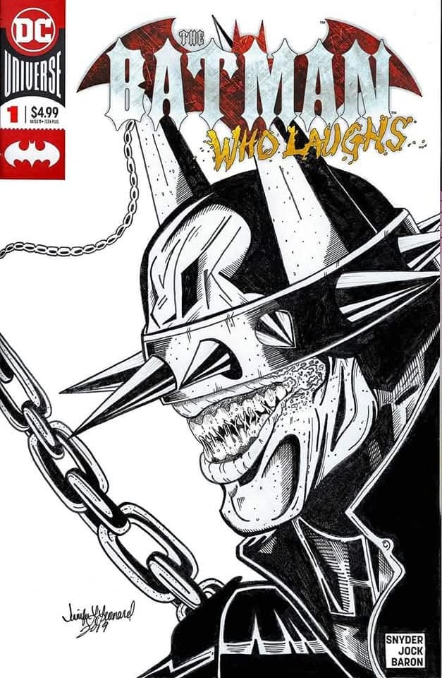 Original art of Batman Who Laughs on a #1 sketch cover.